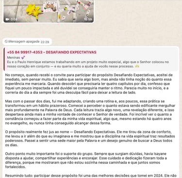 “Mostrar que não é preciso perfeição para se aproximar de Deus — é preciso constância, fé e disposição para recomeçar todos os dias.”