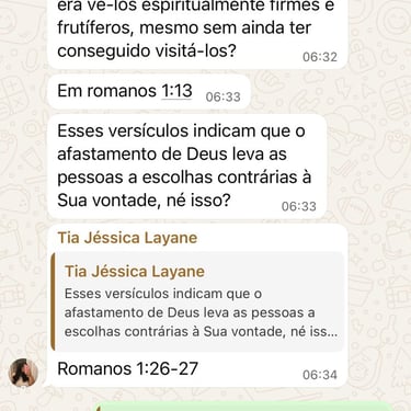 Com uma trajetória marcada por desafios pessoais e experiências profundas de transformação espiritual, Isayane decidiu unir sua vivência de fé com princípios práticos de disciplina e clareza emocional — e assim nasceu o método que hoje inspira pessoas a viverem uma vida espiritual mais leve, organizada e real.