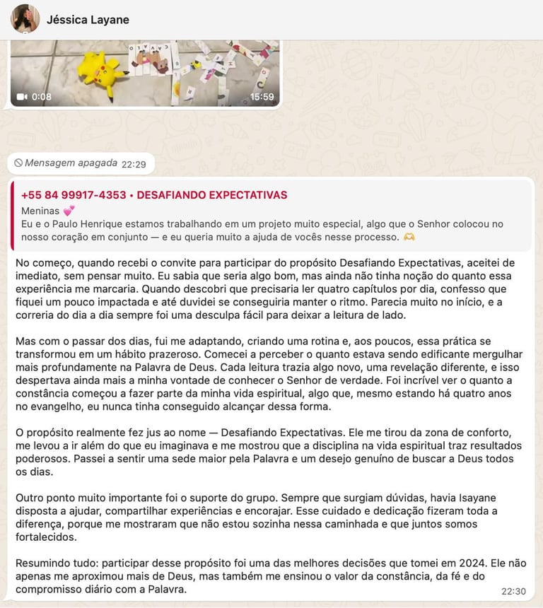 O Desafiando Expectativas já impactou centenas de vidas através de projetos como o “40 Dias de Renovação Espiritual”, onde Isayane conduz os participantes em uma jornada de 40 dias de sabedoria, adoração e reconexão com Deus.
